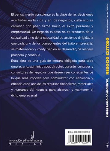 Destinado a empresarios, administradores, directores, gerentes, contadores y consultores de negocios, "Empresario consciente, negocio exitoso" es una lectura obligada para cualquiera que desee entender lo que realmente importa en el mundo de los negocios y cómo alcanzar el éxito de manera consciente y sostenible.